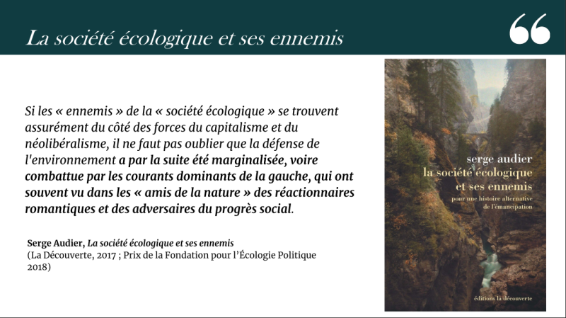 Devant une petite trentaine de sympathisant·es et d'adhérent·es des Écologistes, David Cormand 1), aujourd'hui député européen, après avoir été lui-même Secrétaire national du parti dans les années 2010, a brossé une histoire du mouvement écologiste en France, depuis les principaux auteurs et théoriciens dès le XIXe siècle, jusqu'à la situation du parti écolo au début des années 2010.