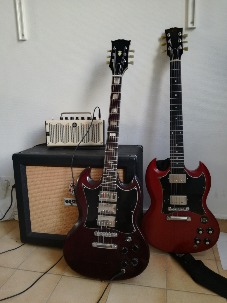 - Trois positions “en bas”, avec seulement les deux micros habituels d'une SG (donc manche, manche+chevalet, chevalet)
