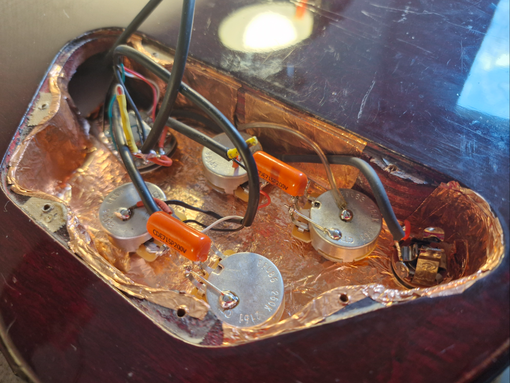 Le circuit électrique de la SG CMI, complètement changé par le luthier Nugz, en 2025