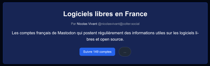 - Logiciels libres en France (149 comptes) : https://fedidevs.com/s/NDQz/