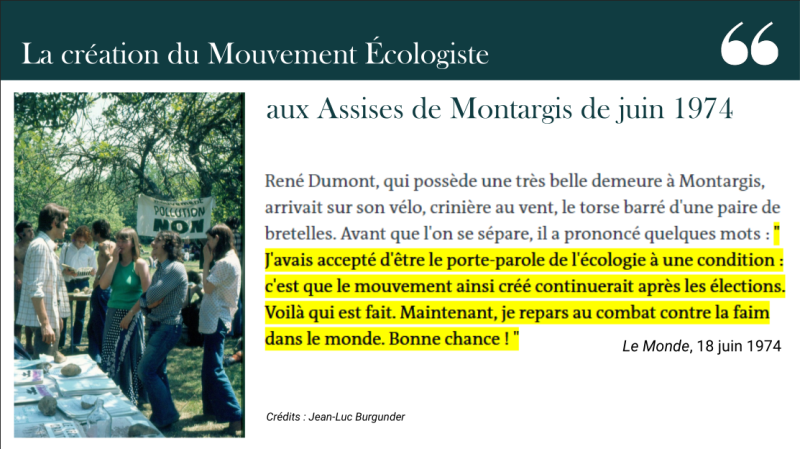 La première candidature écolo aux élections présidentielles par René Dumont en 1974 ;